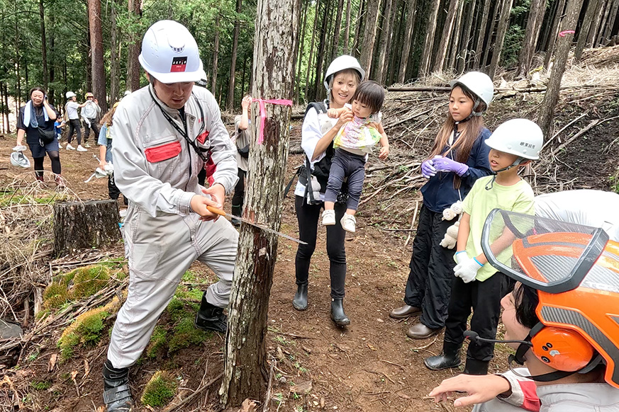 「アクティオの森2025」で、社員が森林整備のための間伐作業を体験