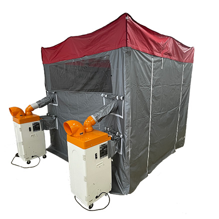 テント内の空気を吸い込み、クーラーで冷却して再び送り込むことで、内部を効率よく冷やします。