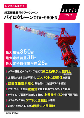 | 電動機 起伏 | 55kW 4P 25%ED インバータ制御 |